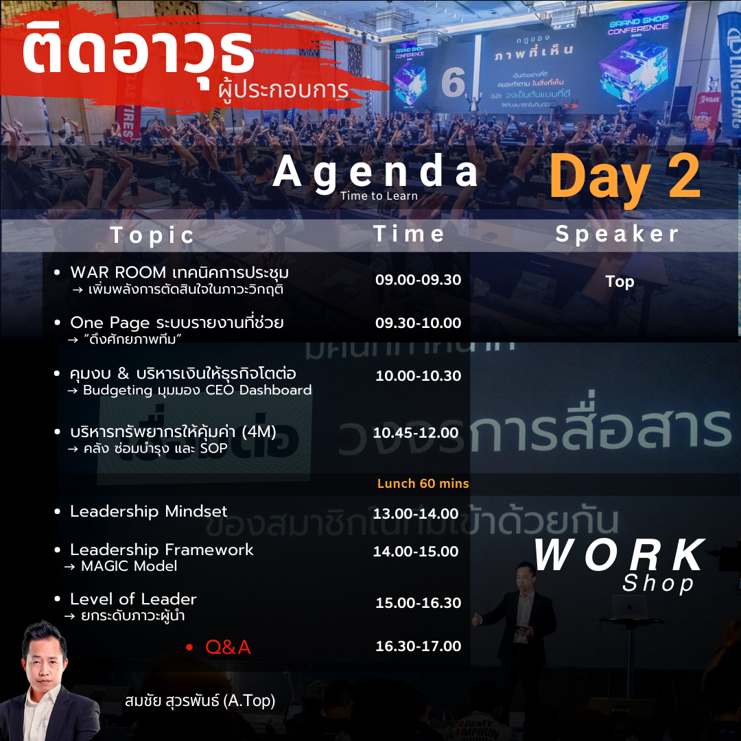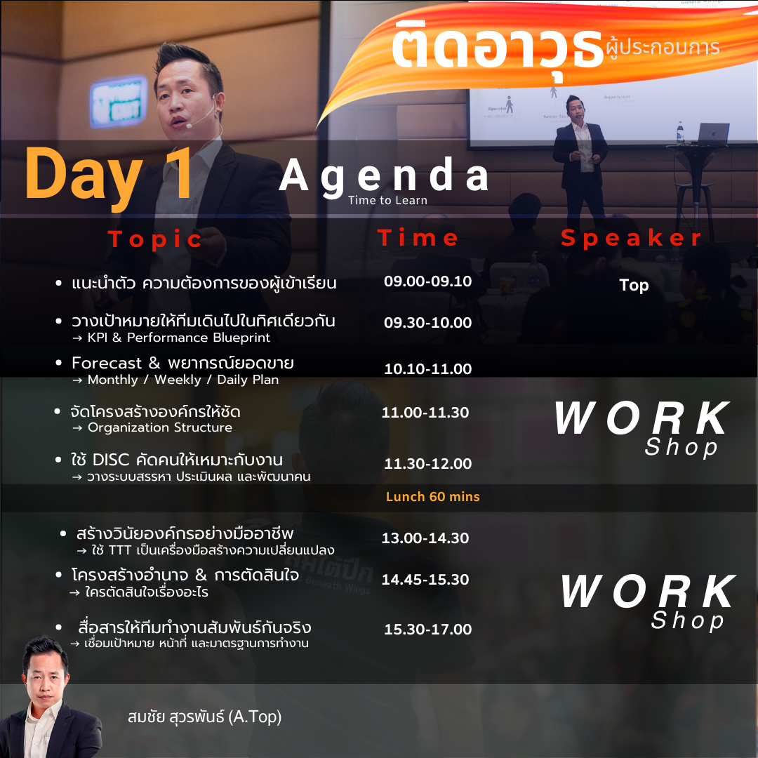 เหมาะสำหรับ เจ้าของกิจการ ผู้บริหาร หัวหน้าทีม และผู้จัดการ ที่ต้องการ “จัดระบบบริษัทให้มั่นคง” และยกระดับภาวะผู้นำในยุคเปลี่ยนแปลง โดยเฉพาะธุรกิจที่กำลังโต งานเริ่มยุ่ง ระบบเริ่มไม่ทันคน